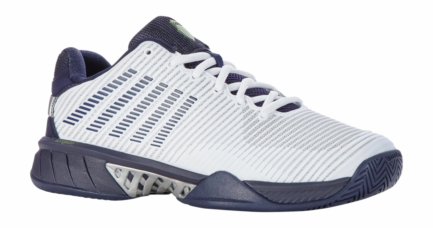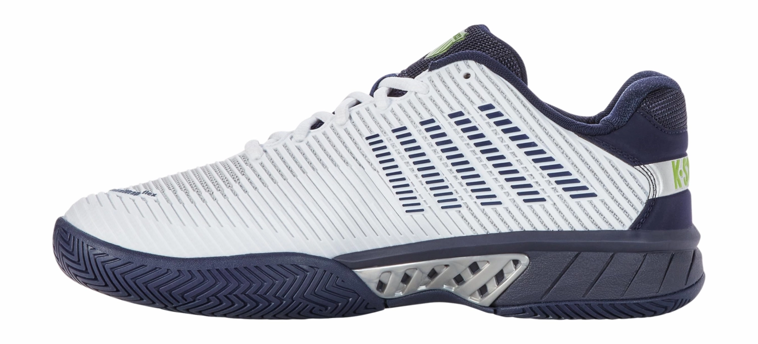 Les chaussures de tennis K-Swiss Hypercourt Express 2 en couleur Blanc Peacoat Argent sont un ajout essentiel pour tout joueur de tennis sérieux. Ces chaussures de tennis de haute qualité offrent une combinaison parfaite de confort léger, de respirabilité et d’ajustement inégalé. Que vous soyez débutant ou joueur expérimenté, cette chaussure s’adapte facilement à différents styles de jeu et niveaux. La chaussure présente une construction supérieure ultramoderne sans couture, réalisée par soudure à chaud. Avec sa semelle spéciale dotée de rainures moins profondes et d’un disque pivotant, vous pouvez effectuer des mouvements rapides sur le court. Le châssis de soutien plantaire 180 PSC offre une stabilité autour de la voûte plantaire, tandis que le composé de caoutchouc Aösta 7.0 offre une durabilité de la pointe au talon. Avec la protection supplémentaire de Dragguard 7.0 et le matériau Durawrap Flex qui offre un confort immédiat sans période de rodage, cette chaussure de tennis est un incontournable absolu. Convient pour les hommes. Découvrez la marque K-Swiss, un leader sur le marché des baskets. Avec un design tendance et un confort immédiat, les chaussures K-Swiss sont un choix idéal pour les amateurs de tennis.
