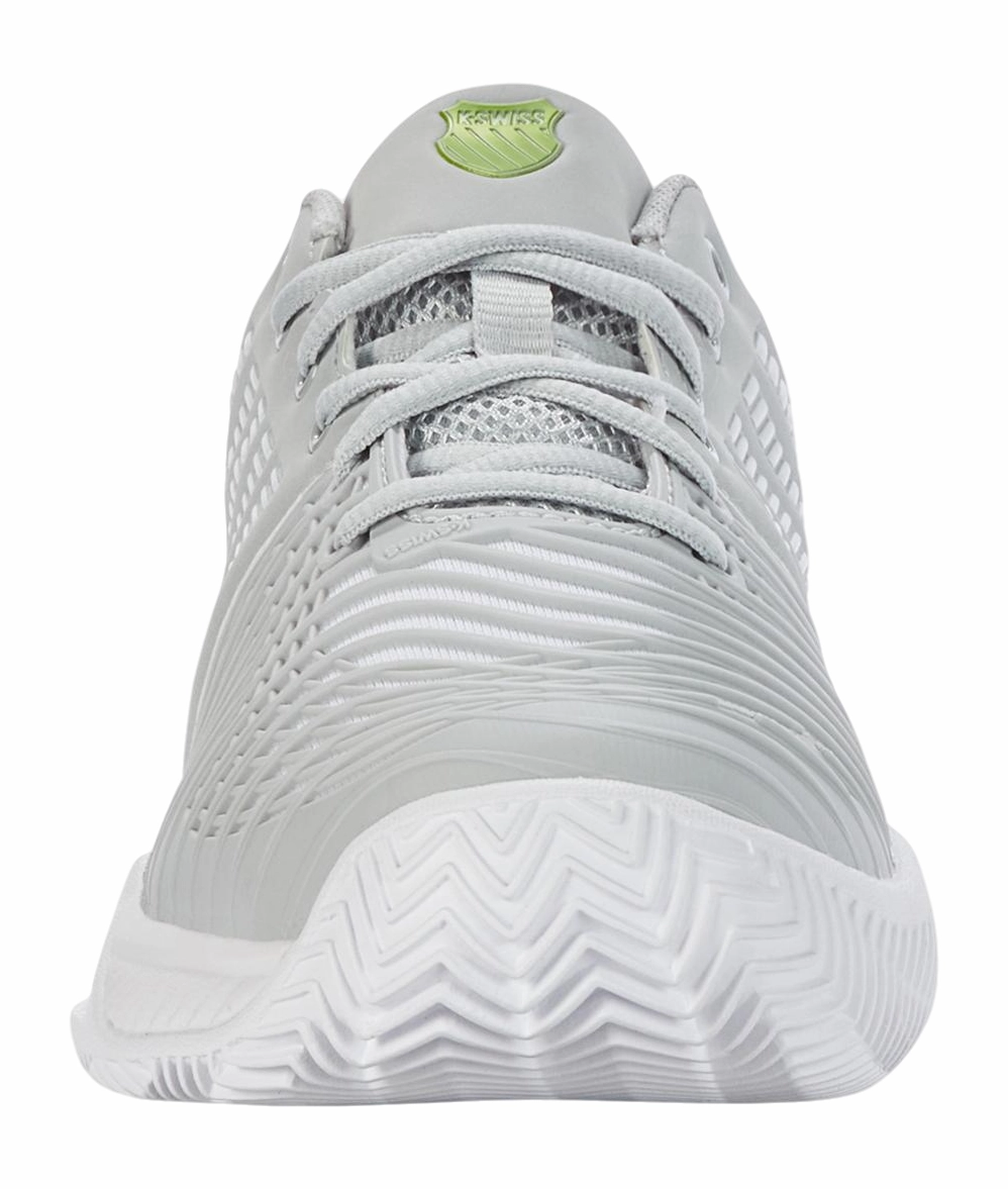 Ces chaussures de tennis de la célèbre marque K-Swiss de la série Express Light 3 HB sont un incontournable pour toute joueuse de tennis. Avec une combinaison de couleurs tendance de violet gris, blanc et vert citron, ces chaussures dégagent une allure sportive et élégante sur le court de tennis. Fabriquées en cuir synthétique de haute qualité et dotées d’une semelle en caoutchouc, ces chaussures offrent durabilité et une excellente adhérence sur terre battue. Conçues en gardant à l’esprit les besoins des joueuses de tennis modernes, leur construction légère assure un confort et une stabilité optimaux, vous permettant de vous concentrer pleinement sur le jeu. Grâce à leur grande respirabilité, vos pieds resteront frais et secs, même pendant les matchs intenses. Les technologies avancées telles que K-EVA et Durawrap Flex offrent un amorti maximal, une protection contre l’usure et une flexibilité. Le rembourrage autour des chevilles offre un confort et une stabilité supplémentaires, tandis que le motif en chevrons de la semelle offre une excellente adhérence sur terre battue. Grâce à la technique Stay-tied, les lacets restent bien attachés, vous évitant de vous soucier des lacets défaits pendant le jeu. Le composé en caoutchouc Aösta 7.0 assure une durabilité de la pointe au talon, tandis que la semelle intérieure Ortholite offre un amorti et une réactivité au pied. De plus, la chaussure est doublée de textile et possède un châssis plantaire 180 PSC qui offre une stabilité au niveau de la voûte plantaire. Ces chaussures de tennis conviennent aux femmes à la recherche de qualité, de performance et de style sur le court de tennis. Avec les K-Swiss Express Light 3 HB, vous êtes prête à élever vos compétences en tennis à un niveau supérieur.