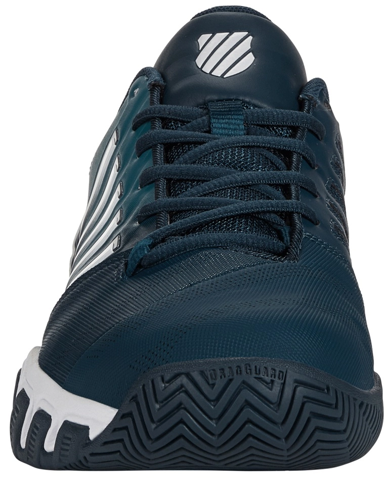 Ces chaussures de tennis sont issues de la sĂ©rie Bigshot Light 4 de la marque K-Swiss. L’empeigne mise Ă jour du Bigshot Light 4 offre un confort de port supplĂ©mentaire et repose bas sur la surface du court, ce qui assure une excellente sensation au ras du sol. Cette chaussure lĂ©gĂšre est trĂšs rĂ©sistante, offre beaucoup de maintien et est stable. La tige contient un matĂ©riau synthĂ©tique en deux parties qui assure un ajustement confortable. De plus, la semelle en composĂ© de caoutchouc Aösta 7.0 convient Ă toutes les surfaces et offre une grande durabilitĂ© grĂące Ă sa haute densitĂ©. La semelle a des rainures moins profondes et une plaque tournante pour des mouvements rapides sur le terrain et la semelle intercalaire K-EVA offre un amorti et un soutien maximum pour les mouvements latĂ©raux. De plus, le dragguard offre une durabilitĂ© accrue dans les zones sujettes Ă l’usure. La maille sur la tige garantit que ces chaussures de tennis sont Ă©galement respirantes.
