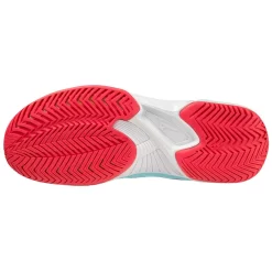 Chaussures De Tennis Mizuno Femme Wave Enforce Tour CC Tanager Turquoise Fiery Coral 2 Blanc